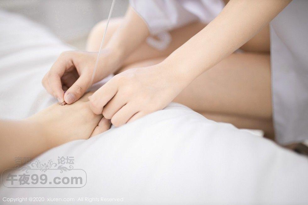 [美腿翘臀] 嫩模唐安琪护士打针主题性感白色内衣配肉丝裤袜迷人诱惑写真【50P】 |
